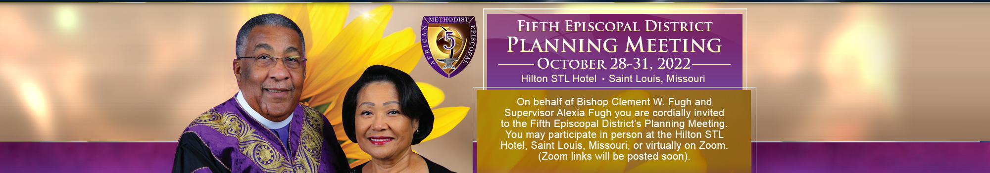 On behalf of Bishop Clement W. Fugh and Supervisor Alexia Fugh, you are cordially invited to participate in person at the Hilton STL Hotel Saint Louis, MO October 28th, 2022 – October 31st, 2022 or virtually on zoom.
