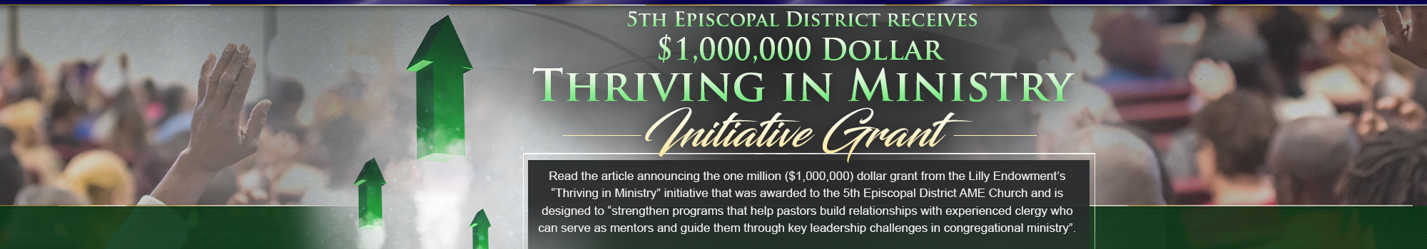 Bishop Clement W. Fugh, Presiding Bishop of the Fifth Episcopal District African Methodist Episcopal Church, joins with Drs. Karla Cooper and Lesa Johnson, co-developers of From Wander to Wonder: Surviving Pastoral Exile to Thriving Pastoral Excellence, in announcing a very generous grant in the amount of one million dollars ($1,000,000.00) from the Lilly Endowment Inc.’s Thriving in Ministry initiative. For twenty-five years this Program has supported a variety of religious organizations across the nation as they create or strengthen programs that help pastors build relationships with experienced clergy who can serve as mentors and guide them through key leadership challenges in congregational ministry.